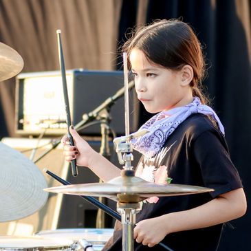 She began playing music at age 4, studying piano with Myla Kato-DuVally (video link) and drums with Marc Slutsky (Peter Murphy, Adam Ant). She also studies percussion/drums with Kristen Gleeson-Prata and classical music with Andrew Funcheon.